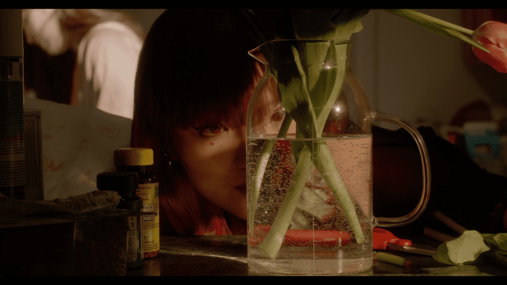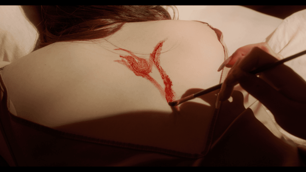 对影片最初的灵感来自于一个梦境,两只黑色的大鹅在厕所无耻地吃着地上的米,一个年轻女性倒在血泊里,像是在睡觉。非常荒诞的一个景象,但我感到了强烈的悲伤,这种悲伤在我梦醒后还久久宁绕在心头。 我相信有很多人都和我一样在寻找人生的不同可能性,虽然可能性令人沮丧。我们尝试通过对关系的探索,去找到答案,可是关系只会使人迷茫。我给女生取名红红,她用热烈的颜色度过这一生,她的才华、美貌、神秘在这个世界留下浓墨重彩的一笔。她孤独地活着,男人女人对她的爱,或者说他们自以为是的爱,就像牢笼把她与自我阻隔起来。 红红有很多的问题,但是她鲜活、富有生命力、她流血,足够真诚,在建立联结的过程中,她没有妥协,用自己的方式回归土地。 我由衷地希望当代年轻人可以活出自己的色彩,不被人与人之间的隔阂所打倒。加油。 The initial inspiration for the film came from a dream in which two black geese were shamelessly eating rice on the floor of a toilet, and a young lady was lying in a pool of blood, as if she were sleeping. It was a very absurd scene, but I felt an intense sadness that haunted me long after I woke up. I’m sure there are many people like me who are searching for different possibilities in life, as frustrating as the possibilities are. We try to find answers by exploring relationships, but relationships only confuse people. I named the girl Ruby. She spends this life with passionate colors. Her talent, beauty, and mystery leave a strong mark on the world. She lives lonely, and the love of men and women for her, or what they think love is, is like a prison cage keeping her from herself. Ruby has a lot of problems, but she is vivid and full of life. She bleeds, and is sincere enough to return to the land in her own way without compromising in the process of building a connection. I sincerely wish that the youth of today can live their own colors and not be beaten down by the barriers that separate people from each other. Here we go.